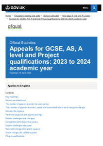 Appeals for GCSE, AS, A level and Project qualifications: 2023 to 2024 academic year : Published 10 April 2025.