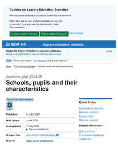 Schools, pupils and their characteristics, Academic year 202425 - Explore education statistics - GOV.UK.pdf - Published Version Available under License Open Government Licence. Download (467kB) | Preview |