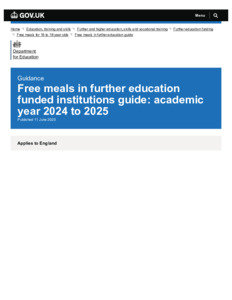 Free meals in further education funded institutions guide : academic year 2024 to 2025.
