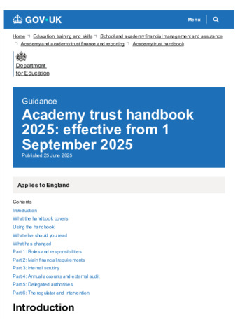 Academy Trust handbook 2025 effective from 1 September 2025 - GOV.UK.pdf - Published Version Available under License Open Government Licence. Download (684kB) | Preview |