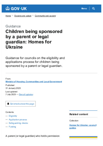 Children being sponsored by a parent or legal guardian : Homes for Ukraine : Updated 7 July 2025.