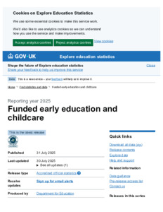 Funded early education and childcare, Reporting year 2025 - Explore education statistics - GOV.UK.pdf - Published Version Available under License Open Government Licence. Download (354kB) | Preview |