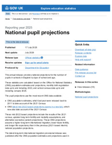 National pupil projections, Reporting year 2025 - Explore education statistics - GOV.UK.pdf - Published Version Available under License Open Government Licence. Download (487kB) | Preview |