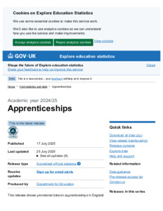 Apprenticeships, Academic year 202425 - Explore education statistics - GOV.UK.pdf - Published Version Available under License Open Government Licence. Download (1MB) | Preview |