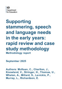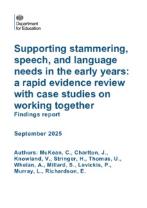 Supporting stammering, speech, and language needs in the early years: a rapid evidence review with case studies on working together : Findings report, September 2025.