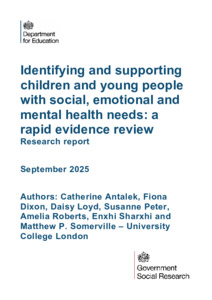 Identifying and supporting children and young people with social, emotional and mental health needs: a rapid evidence review : Research report, September 2025.