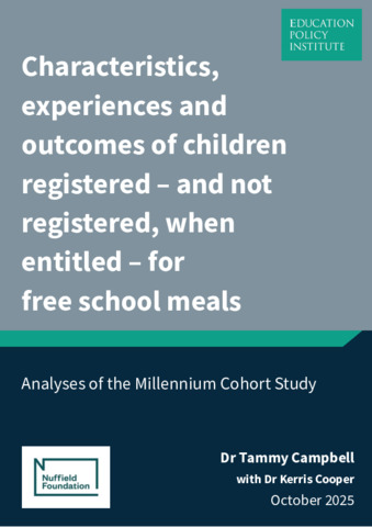 Characteristics, experiences and outcomes of children registered – and not registered, when entitled – for free school meals : Analyses of the Millennium Cohort Study.