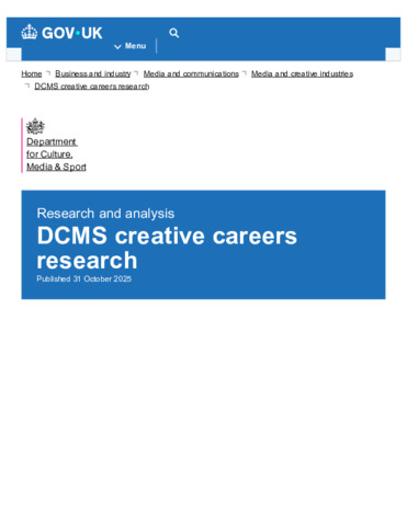 DCMS creative careers research : Published 31 October 2025.