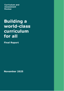 Curriculum and assessment review : Building a world-class curriculum for all : final report, November 2025.