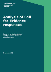 Curriculum_and_Assessment_Review_analysis_of_call_for_evidence_responses.pdf Volume/Part: Analysis of call for evidence responses - Published Version Available under License Open Government Licence. Download (364kB) | Preview |