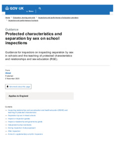 Protected characteristics and separation by sex on school inspections - GOV.UK.pdf - Published Version Available under License Open Government Licence. Download (283kB) | Preview |