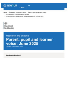 | Additional Information: | This document was converted from HTML format into PDF format and added to DERA on 3 December 2025. Due to formatting issues, some data may have been lost or truncated in the conversion process. Please refer to the publisher website if you wish to access the fully interactive version of the document. - Parent, Pupil and Learner Voice (PPLV). - Applies to England. |