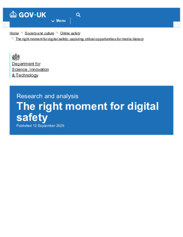 The right moment for digital safety - GOV.UK.pdf - Published Version Available under License Open Government Licence. Download (693kB) | Preview |