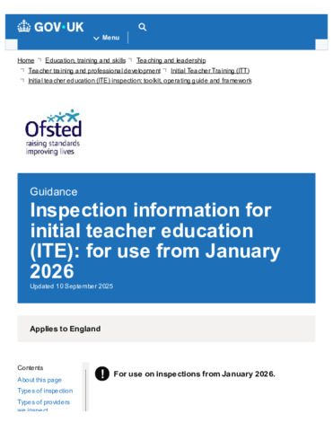 Initial teacher education inspection toolkit : Updated 9 September 2025.
