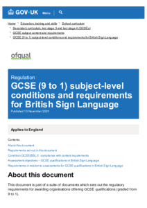 GCSE (9 to 1) subject-level conditions and requirements for British Sign Language : Published 13 November 2025.