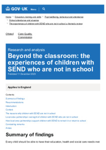 Beyond the classroom : the experiences of children with SEND who are not in school.