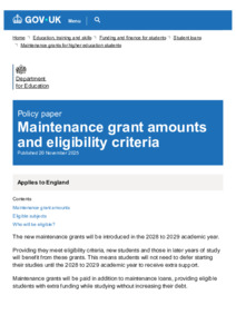 Maintenance grant amounts and eligibility criteria - GOV.pdf - Published Version Available under License Open Government Licence. Download (167kB) | Preview |