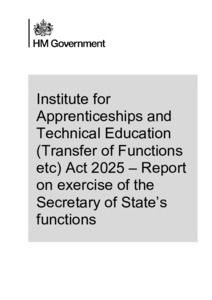 Institute for Apprenticeships and Technical Education (Transfer of Functions etc) Act 2025 : Report on exercise of the Secretary of State’s functions.