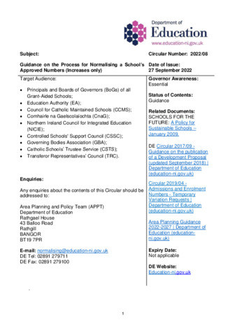 Circular 22 08 - Guidance on the Process for Normalising a School’s Approved Numbers (Increases only)- 27 Sept.pdf Volume/Part: 2022/08 - Published Version Available under License Open Government Licence. Download (680kB) | Preview |