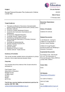 DE Circular 2023-03 - Revised Personal Education Plan Guidance for Children Looked After_0.pdf Volume/Part: 2023/03 - Published Version Available under License Open Government Licence. Download (2MB) | Preview |