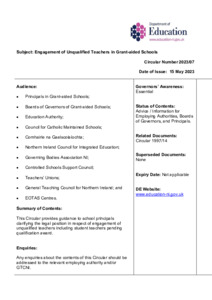 DE Circular 2023-07 - Engagement of Unqualified Teachers.pdf Volume/Part: 2023/07 - Published Version Available under License Open Government Licence. Download (550kB) | Preview |