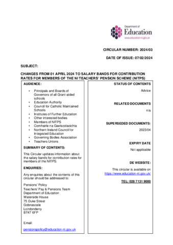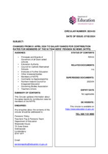 Circular - Salary Bands for Member Contribution Rates 01 April 2024.pdf - Published Version Available under License Open Government Licence. Download (156kB) | Preview |