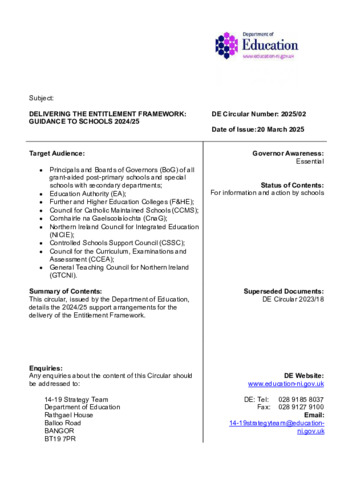 ED1 25 56290 Circular 2025-02, Delivering the Entitlement Framework Guidance to Schools 2024 25(4).pdf - Published Version Available under License Open Government Licence. Download (166kB) | Preview |