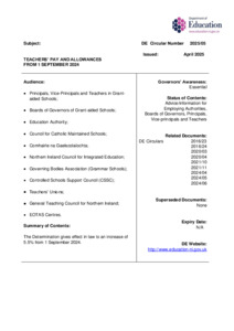 DE Circular 2025 05 Teachers Pay & Allowances from 1 Sept 2024.pdf - Published Version Available under License Open Government Licence. Download (199kB) | Preview |