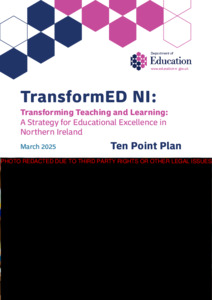 TransformED NI 10 Point Plan_Redacted.pdf Volume/Part: Ten Point Plan - Published Version Available under License Open Government Licence. Download (225kB) | Preview |