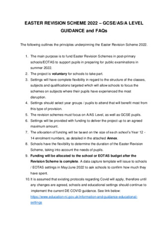 EASTER REVISION SCHEME 2022 – GCSE AS A LEVEL - GUIDANCE FOR SCHOOLS(2).pdf Volume/Part: Guidance and FAQs - Published Version Available under License Open Government Licence. Download (246kB) | Preview |