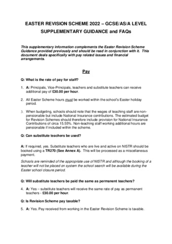 EASTER REVISION SCHEME 2022 – SUPPLEMENTARY GUIDANCE.pdf Volume/Part: Supplementary guidance and FAQs - Published Version Available under License Open Government Licence. Download (952kB) | Preview |
