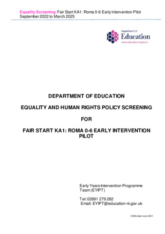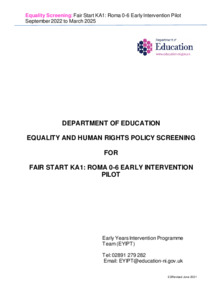 Equality Screening - FAIR START KA1 ROMA 0-6 EARLY INTERVENTION PILOT.pdf - Published Version Available under License Open Government Licence. Download (278kB) | Preview |