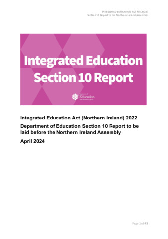 Integrated Education Act (Northern Ireland) 2022 : Department of Education Section 10 Report to be