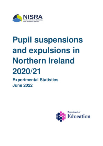 Pupil suspensions and expulsions in Northern Ireland 2020/21 : Experimental Statistics : June 2022.