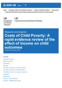 Costs of child poverty A rapid evidence review of the effect of income on child outcomes - GOV.UK.pdf - Published Version Available under License Open Government Licence. Download (1MB) | Preview |