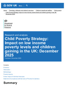 Child Poverty Strategy : Impact on low income poverty levels and children gaining in the UK, December 2025.