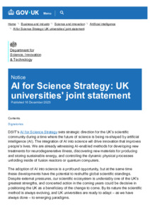 AI for Science Strategy : UK universities' joint statement.