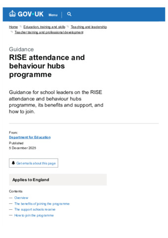 RISE attendance and behaviour hubs programme - GOV.UK.pdf - Published Version Available under License Open Government Licence. Download (157kB) | Preview |
