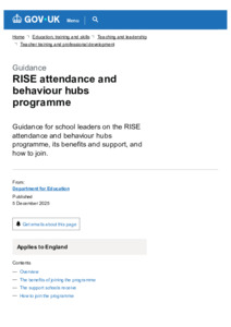 RISE attendance and behaviour hubs programme : guidance for school leaders on the RISE attendance and behaviour hubs