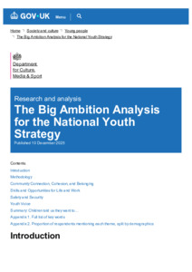 The Big Ambition Analysis for the National Youth Strategy - GOV.UK.pdf - Published Version Available under License Open Government Licence. Download (502kB) | Preview |