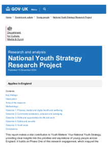 National Youth Strategy Research Project - GOV.UK.pdf - Published Version Available under License Open Government Licence. Download (595kB) | Preview |