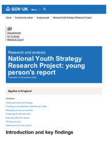 National Youth Strategy Research Project - young person's report - GOV.UK_Redacted.pdf - Published Version Available under License Open Government Licence. Download (287kB) | Preview |