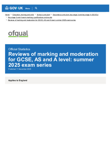 Reviews of marking and moderation - summer 2025 exam series - GOV.UK.pdf Volume/Part: Reviews - Published Version Available under License Open Government Licence. Download (442kB) | Preview |