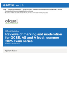 Reviews of marking and moderation for GCSE, AS and A level : summer 2025 exam series.