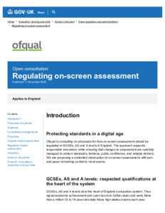 Regulating on-screen assessment - GOV.UK.pdf - Published Version Available under License Open Government Licence. Download (607kB) | Preview |