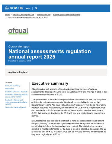 National assessments regulation annual report 2025 - GOV.UK.pdf - Published Version Available under License Open Government Licence. Download (341kB) | Preview |