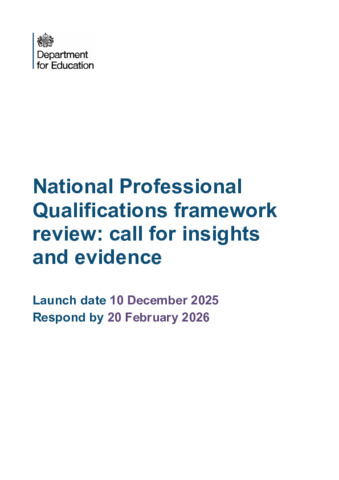 National Professional Qualifications framework review : call for insights and evidence, Launch date 10 December 2025, Respond by 20 February 2026.