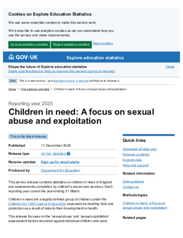 Children in need A focus on sexual abuse and exploitation, Reporting year 2025 - Explore education statistics - GOV.UK.pdf - Published Version Available under License Open Government Licence. Download (472kB) | Preview |
