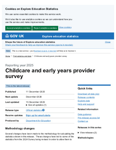 Childcare and early years provider survey, Reporting year 2025 - Explore education statistics - GOV.UK.pdf - Published Version Available under License Open Government Licence. Download (448kB) | Preview |