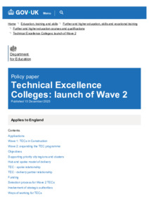 TEC launch of Wave 2 - GOV.UK.pdf - Published Version Available under License Open Government Licence. Download (236kB) | Preview |